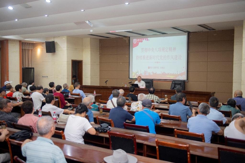 7月3日上午,党委副书记徐晓宗以《贯彻中央八项规定精神,持续推进新时代党的作风建设》为题,为离退休教职工开展专题讲座。讲座由离退休工作处副处长龙渠(主持工...