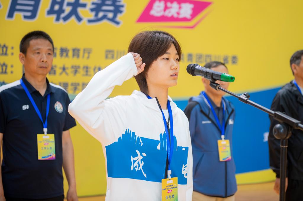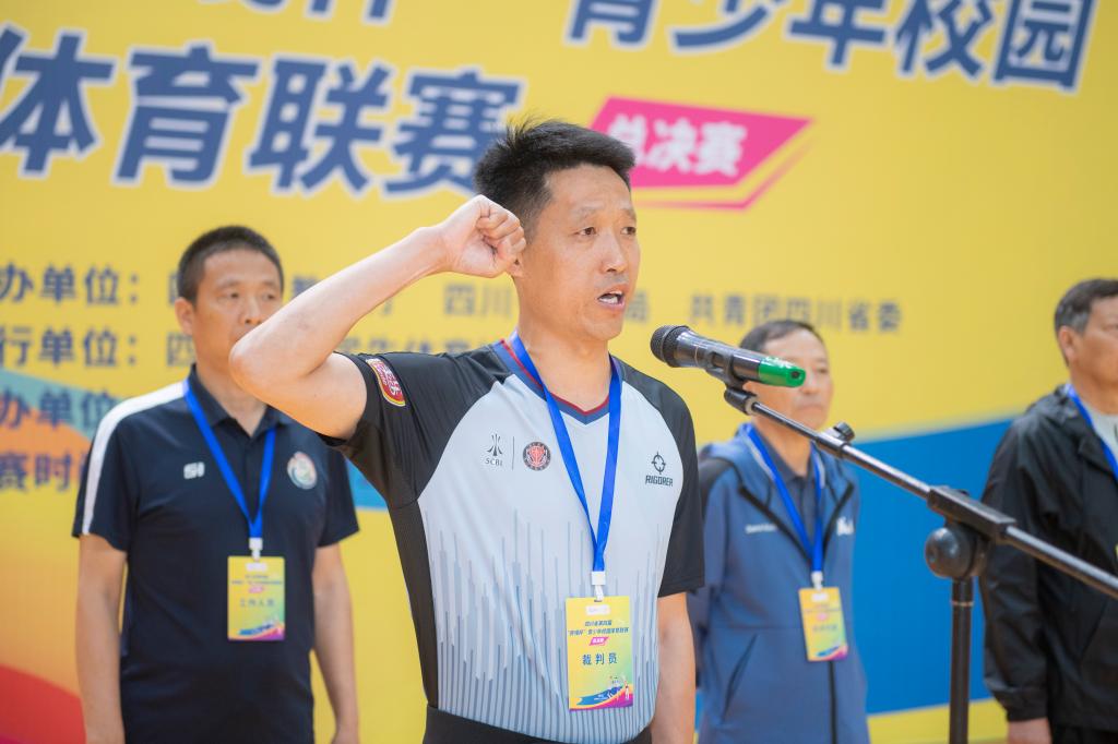 裁判员和运动员代表分别宣誓。裁判员代表表示一定公平公正、秉公执法;运动员代表宣誓将遵守规则、发扬体育精神。
