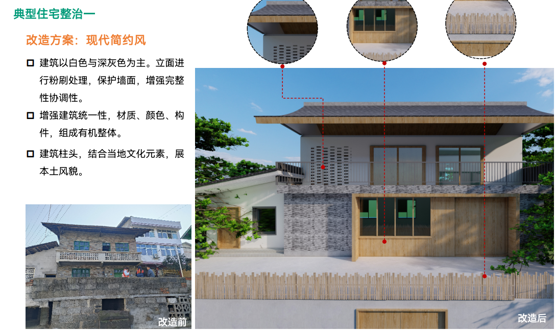 此次规划积极针对杉林湾建设及近期发展的迫切需要,对村庄临近场镇地段进行了“千万工程”先行区的重点设计。先行区以六条线路为骨架,形成“乡愁村居、蔬果满园、传统风情、生态绿林”四个发展主题,并结合闲置、荒废、街头等空间布设广场、集市、驿站、民宿等多种场所。同时,规划还结合典型民居建筑,融合地域文化、产业类型等特点,提出庭院、住宅、街巷等空间的改造方案。