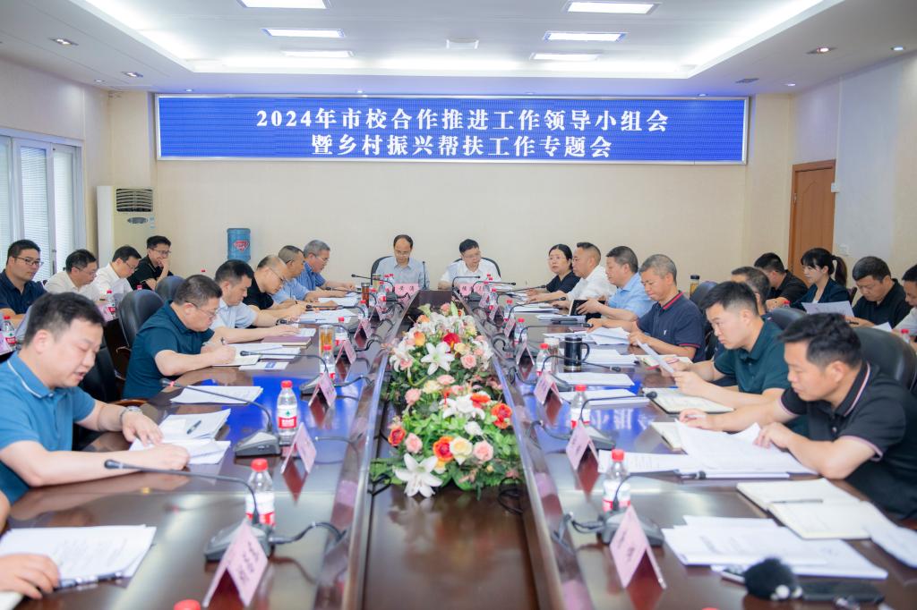会上,市校合作推进工作领导小组办公室汇报2023年市校合作工作推进情况以及2024年校地合作重点工作任务,科研合作工作组、人才引育工作组、校区建设工作组汇报2024年市校合作重点推进工作。