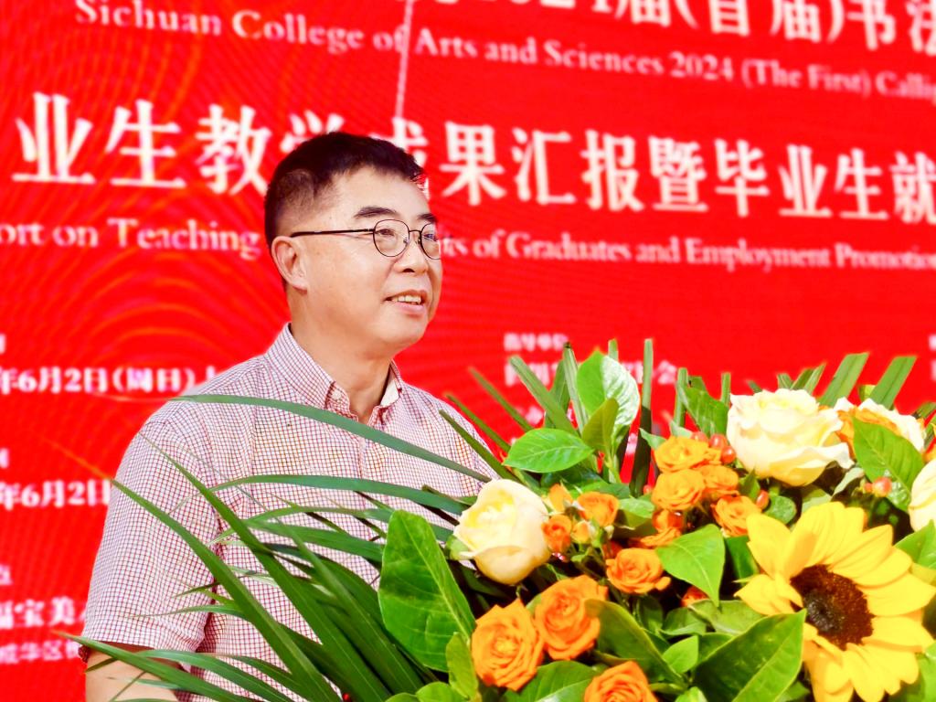 6月2日,我校“青檬流光”——2024届(首届)书法学专业毕业生教学成果汇报暨毕业生就业推介会在四川福宝美术馆举行,中国书协副主席、四川省文联副主席、四川省书协主席戴跃出席讲话并宣布活动开幕,党委书记黄涛出席,校长侯忠明致辞,副校长程碧英主持开幕式,省市书协领导、书法艺术界专家、兄弟高校书法教育工作者,以及我校实践教育单位嘉宾和师生200余人共襄盛会。