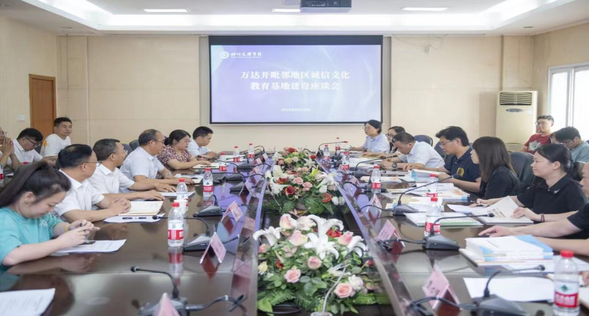 为深化银校合作,积极构建新型银校合作关系,6月12日,万达开毗邻地区诚信文化教育基地建设座谈会在我校召开。副校长苟兴龙出席并讲话,重庆三峡学院马克思学院孙佳副教授、中国人民银行万州分行征信管理科副科长程婵受邀参加座谈会并作工作经验交流,中国人民银行达州市分行副行长杨雪、中国工商银行达州分行高级经理张革清、达州农商银行副行长靳能东参加会议并讲话。参加会议的还有财经管理学院党委书记刘天及教师代表等。会议由财经管理学院院长傅忠贤主持。