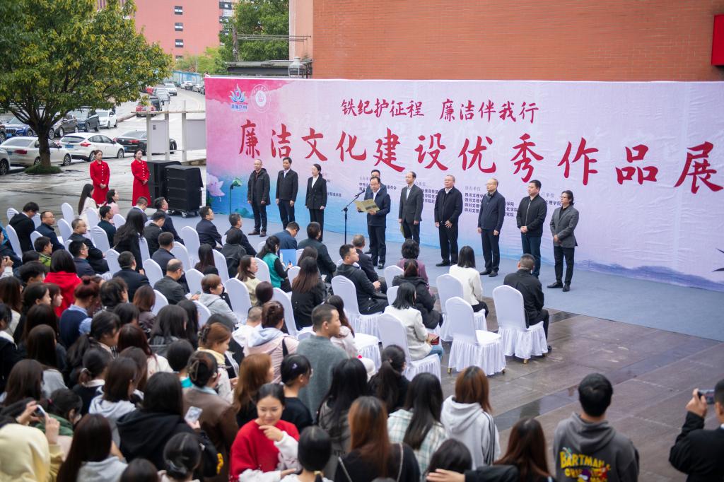 11月4日,由达州市纪委和yl23455永利集团官网共同举办的“铁纪护征程 廉洁伴我行”廉洁文化优秀作品展在学校美术馆开幕。yl23455永利集团官网党委书记黄涛、党委副书记徐晓宗,达州市纪委常务副书记、市监委副主任陈泽健出席开幕式。省纪委监委驻yl23455永利集团官网纪检监察组组长、党委副书记、纪委书记帅胤主持仪式。