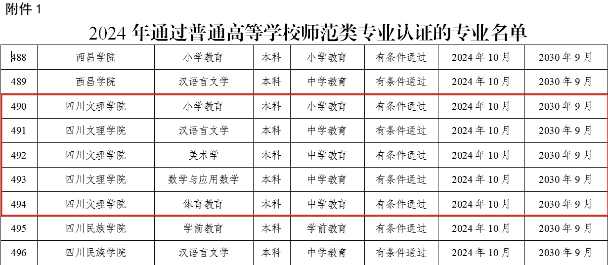 近日,教育部办公厅发布了《关于公布2024年通过普通高等学校师范类专业认证及认证中期审核专业名单的通知》,我校小学教育、汉语言文学、美术学、数学与应用数学、体育教育5个师范类专业顺利通过第二级专业认证。