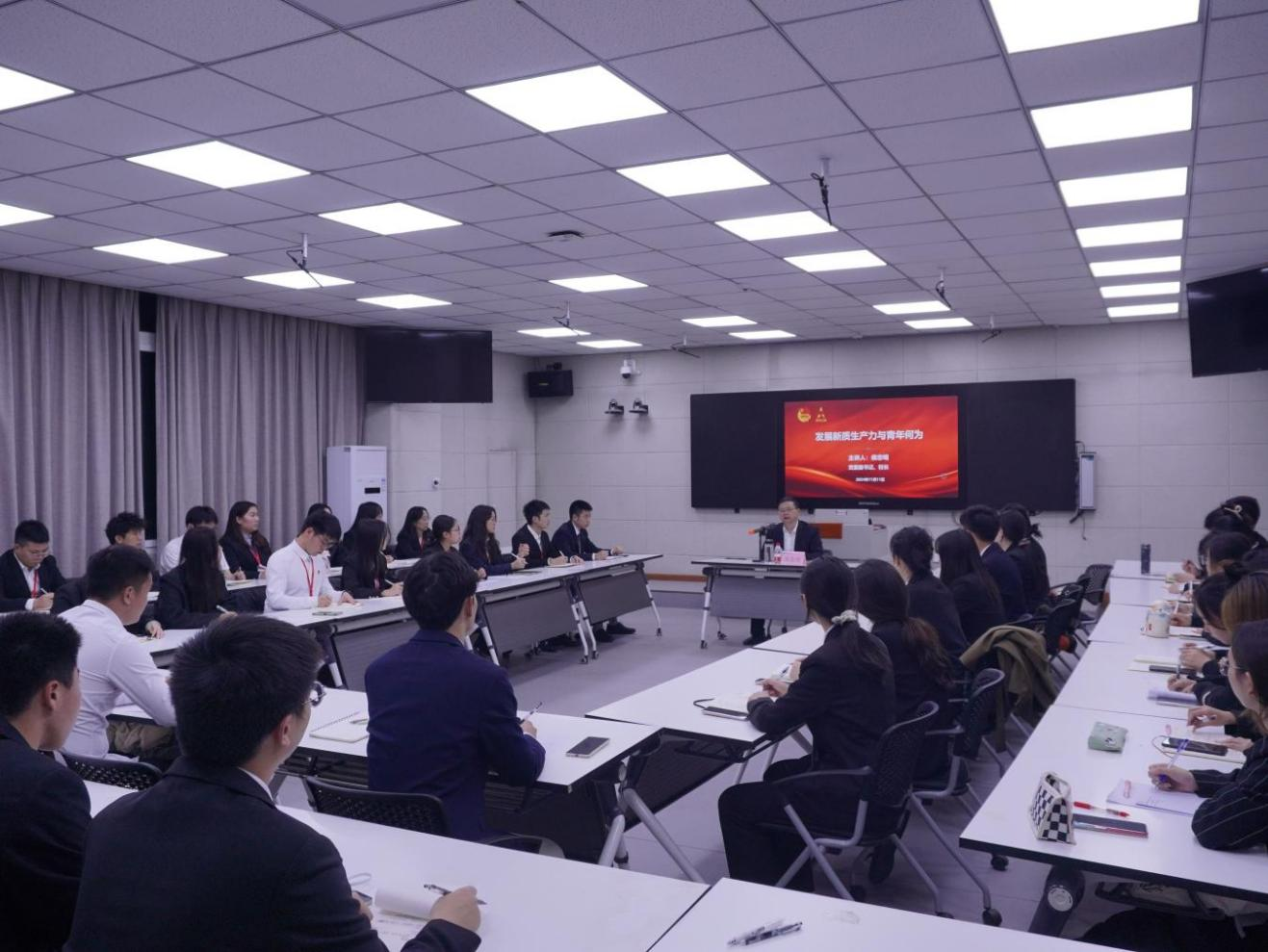 侯忠明围绕什么是新质生产力、如何发展新质生产力、当代青年如何做好准备迎接新质生产力时代的到来等话题,与同学们开展深入讨论交流。