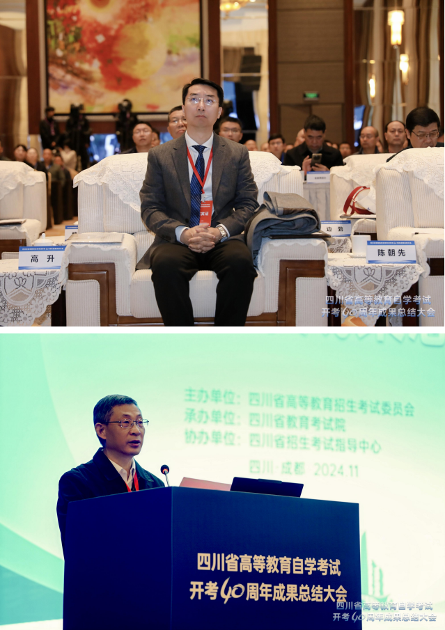 近日,四川省高等教育自学考试开考40周年成果总结大会在成都召开。教育部教育考试院副院长高升出席会议并讲话;省委教育工委书记,教育厅党组书记、厅长余孝其致辞。省委教育工委副书记,教育厅党组成员,一级巡视员陈朝先主持会议。会议回顾了四川省自考开考40年来的辉煌历程,总结了四川省自学考试在安全、规范、质量、服务等方面取得的经验成效。