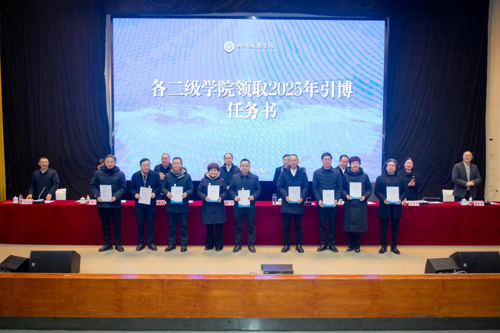 人事处总结2024年人才引进工作并安排2025年引博工作。学校16个二级学院和四川革命老区发展研究中心负责人领取引博任务书。