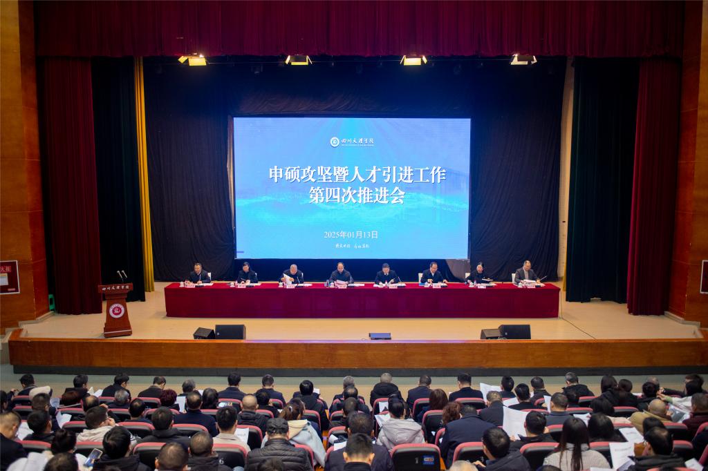 1月13日,学校在莲湖校区召开申硕攻坚暨人才引进工作第四次推进会。党委书记黄涛出席会议并讲话,校长侯忠明总结过去一年工作,安排部署2025年重点工作,党委副书记徐晓宗宣读特聘教授(副教授)、校聘副教授、塔基人才名单,副校长苟兴龙主持会议。
