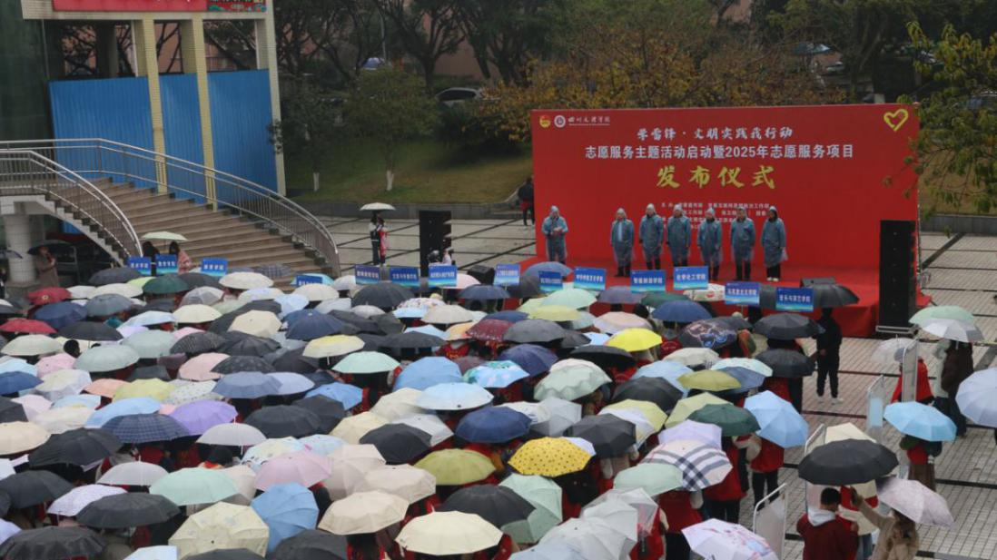 3月12日,我校“学雷锋·文明实践我行动”志愿服务主题活动暨2025年志愿服务项目发布仪式在莲湖校区稻香广场举行。党委副书记徐晓宗出席活动并讲话,副校长陈光平致辞,校团委书记成华军主持发布仪式。