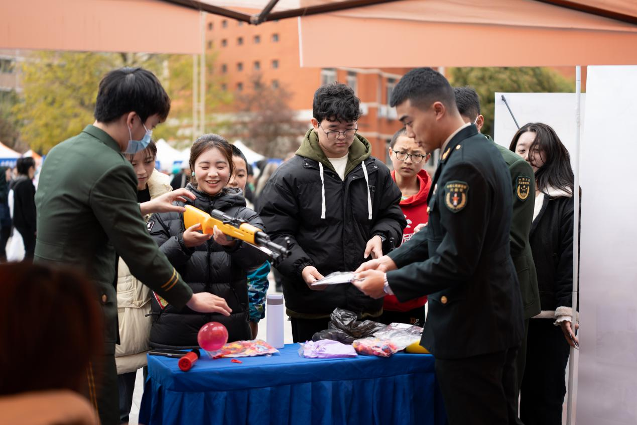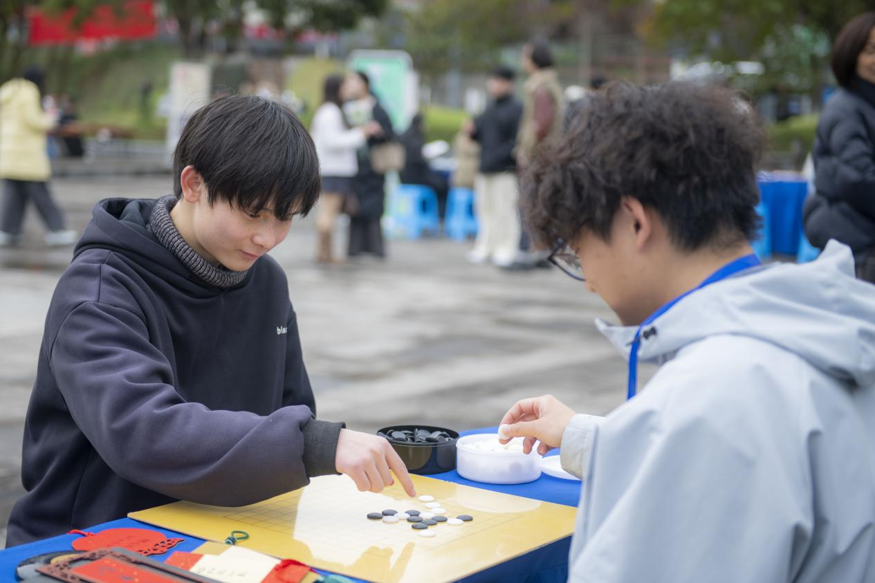 据悉,学校现有112个学生社团,实现了“万人百团”的目标,涵盖思想政治、学术科技、创新创业、志愿公益、文化体育、自律互助等类别。活动现场除了有各社团的风采展示外,还开展了传统文化类学生互动展演和各种各样沉浸式体验活动。活动设有古筝二胡、书法篆刻、趣味投壶、棋类博弈、竹编扇子DIY、茶艺展示、飞花令等多种项目,这一系列丰富多样的传统文化活动,吸引了众多师生驻足体验,在互动中深度感知中华优秀传统文化的魅力。