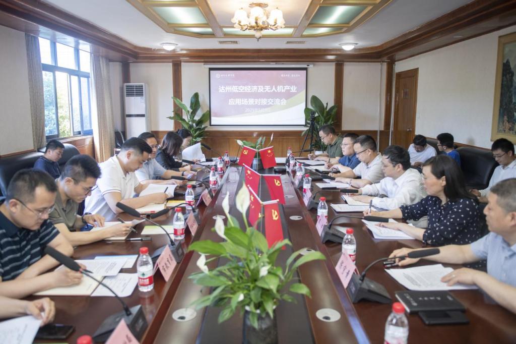 星特公司汇报了达州纳入全省低空运行管理试点城市的进展,提出整合河市机场资源、构建运行管理体系的规划。李涛以"撑天一根担明月,拔地千笋写春秋"为主题,汇报了学校无人机产业学院建设、融入达州低空经济发展及相关需求情况。参会部门进行了讨论交流发言。