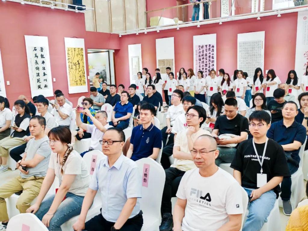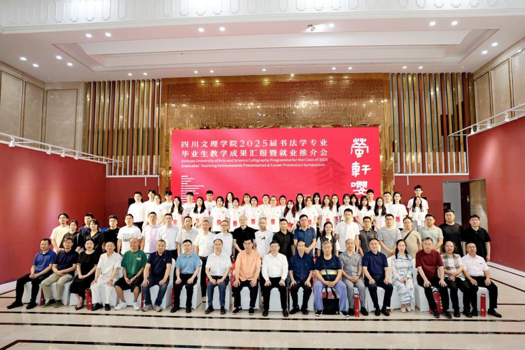 6月8日,四川省书法家协会和我校联合举办的“萤轩嘤鸣”——yl23455永利集团官网2025届书法学专业毕业生教学成果汇报暨就业推介会在四川福宝美术馆举行,省书协主席戴跃出席并讲话,学校党委书记黄涛宣布开幕,校长侯忠明致辞,副校长程碧英主持开幕式,省市书协领导、书法艺术界专家、兄弟高校书法教育工作者、我校实习和就业单位嘉宾及师生200余人共襄盛会。