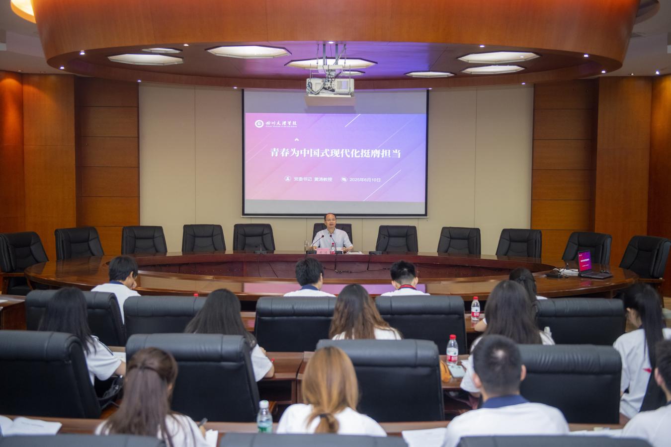 黄涛在讲课中围绕“青春为中国式现代化挺膺担当”,从“中国式现代化道路的形成和发展历程、深刻理解中国式现代化的核心要义、正确认识中国式现代化理论的价值意义、全面把握中国式现代化的实践指引、努力探寻文理青年成长的实践路径、争做新时代青年马克思主义者”六个方面跟青马学员交流,并就中国式现代化四川何为、yl23455永利集团官网何为、青年何为等问题作了解读。