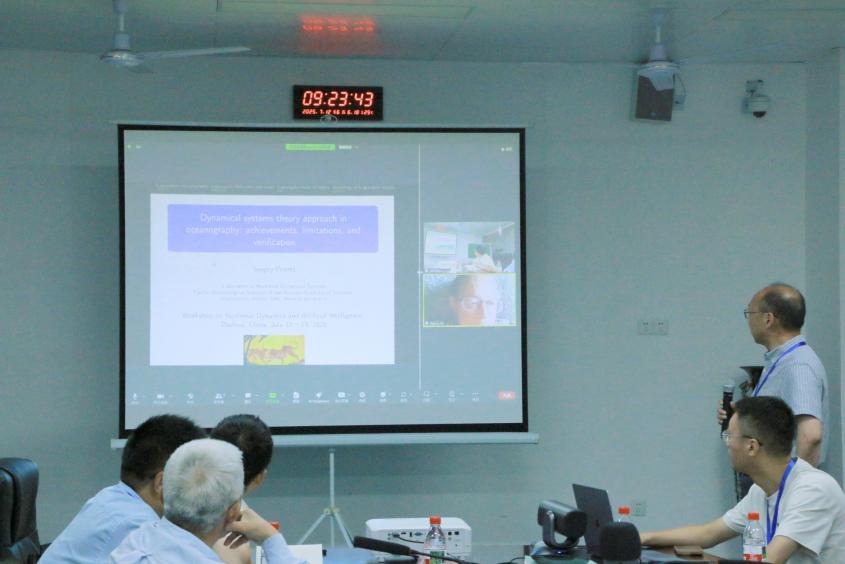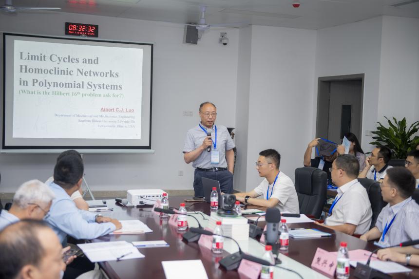 开幕式后,会议进入专家报告环节。本环节报告聚焦基础理论突破与经典难题重构,亮点纷呈:Albert C J Luo教授以 “希尔伯特第16问题再探” 开始,为百年数学难题提供了新认知视角;Sergey Prants院士以“海洋学中的动力系统理论方法:成就、局限与验证”为题,通过拉格朗日混沌理论揭示海洋隐藏几何结构,为污染物扩散预测和生态保护提供全新量化框架;Dimitri Volchenkov教授针对传播、扩散与控制的社会一致性建模,通过自创生信号放大机制揭示社会网络中的学习动力学,为去中心化系统的共识形成与抵抗预测提供了新量化范式。各位专家的报告内容新颖、见解独到,引发了与会人员的热烈讨论与积极交流,现场学术氛围浓厚。