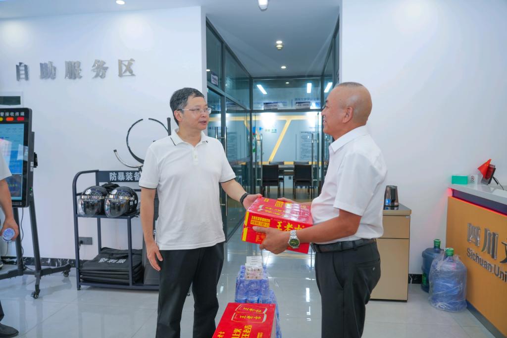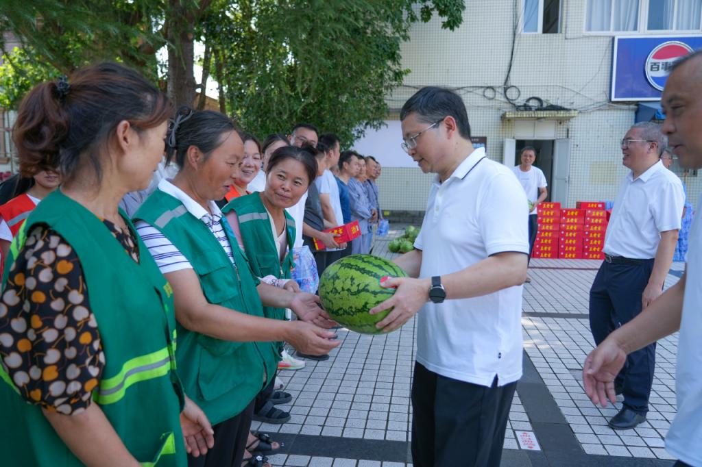 为切实保障暑期坚守岗位教职工身心健康,传递组织关怀与温暖。暑假期间,学校党委书记黄涛、校长侯忠明分别率队开展“送清凉·保安康”慰问活动,为暑期坚守工作岗位的教职员工送去矿泉水、西瓜、凉茶、藿香正气液等防暑降温物品。学校党委副书记、工会主席徐晓宗及副校长邓杰、程碧英、陈光平等参加慰问。