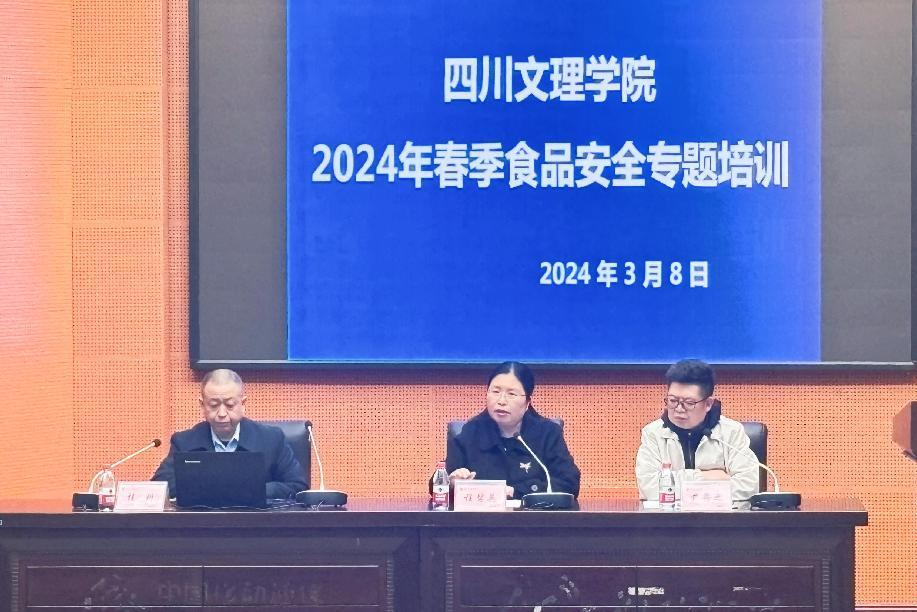 为加强学校食品安全管理工作,进一步提高学校食品安全管理水平,规范食堂从业人员操作程序,掌握必要的食品安全知识,确保“舌尖上的安全”,3月8日,学校食品安全专题教育培训会在莲湖校区学术报告B厅召开。培训会邀请达州市达川区翠屏市场监督管理所王洪杰所长一行为我校餐饮及超市从业人员进行专题培训。副校长程碧英出席会议并讲话。