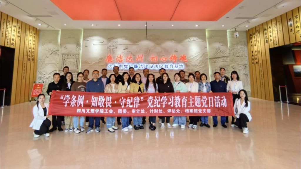5月10日,工会、团委、审计处、计财处、评估处、档案馆党支部党员赴达州市党风廉洁建设法纪教育基地,联合开展“学条例、知敬畏、守纪律”主题党日活动。