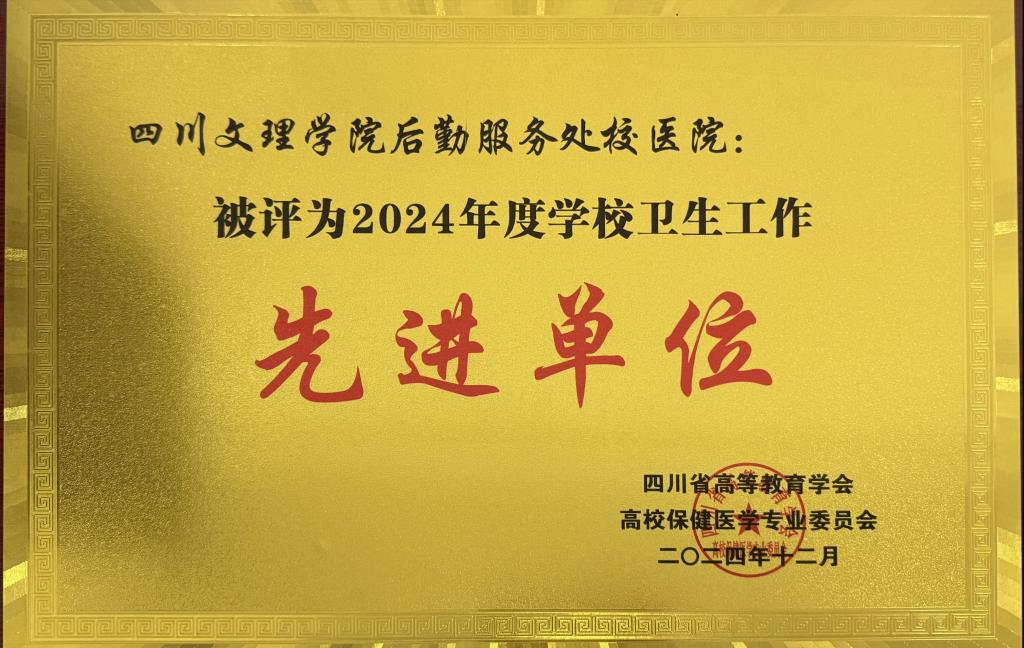 12月27日、28日,四川省高等教育学会高校保健医学专业委员会2024年学术年会在西南科技大学召开。我校校医院荣获“四川省高等教育学会高校保健医学专业委员会2024年度学校卫生工作先进单位”。