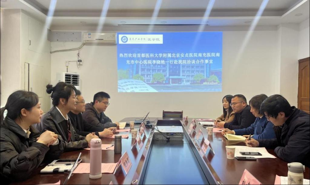 为进一步深化医校合作,3月11日,南充市中心医院康复医学科负责人李晓艳来康养产业学院、医学院洽谈合作事宜。