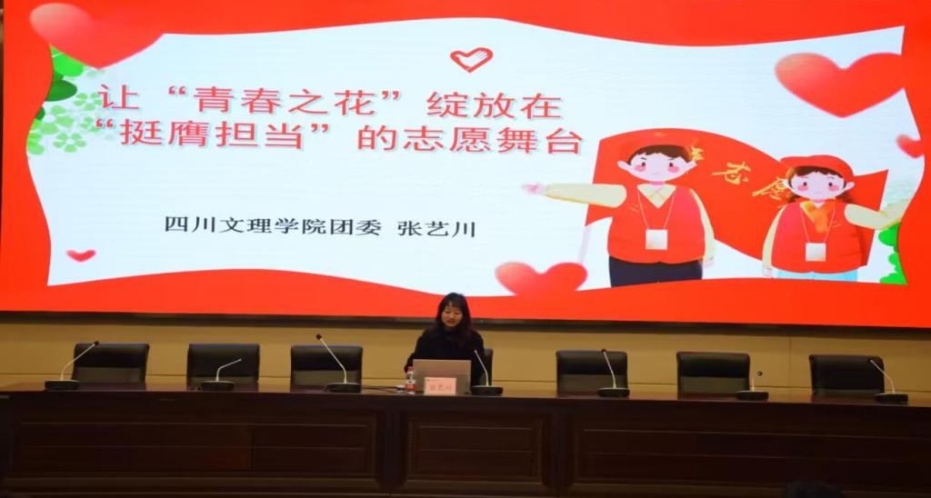 第四课由张艺川以“让‘青春之花’绽放在‘挺膺担当’的志愿舞台”为题进行宣讲,激励广大青年学子不断参与到志愿服务中去,勇担时代重任,为投身民族复兴、构建和谐社会贡献青春力量。
