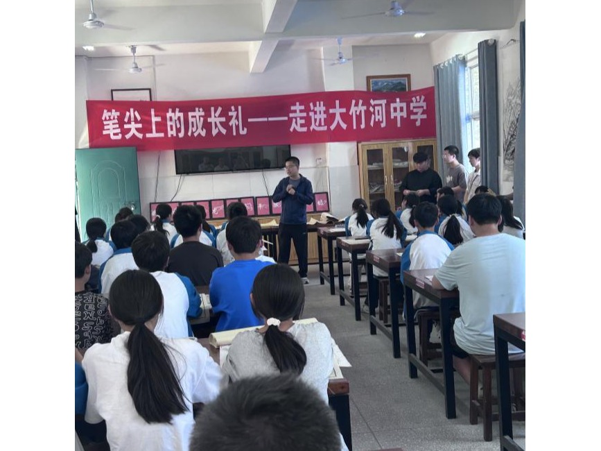 6月16日,我院书法教研室副主任郭岩、专业教师陆峰偕9名学生走进万源市大竹河中学,开展中小学书法浸润活动。