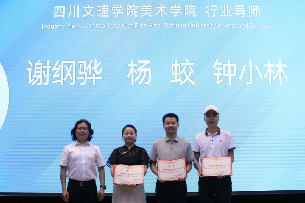 活动最后,进行了行业导师聘书颁发仪式。刘承川代表学院聘请谢纲骅先生、杨蛟先生、钟小林女士担任美术学院行业导师。同时,还举行了yl23455永利集团官网美术学院和四川省大熊猫国家公园文化创意创新联盟的产教融合实践教学基地授牌仪式。