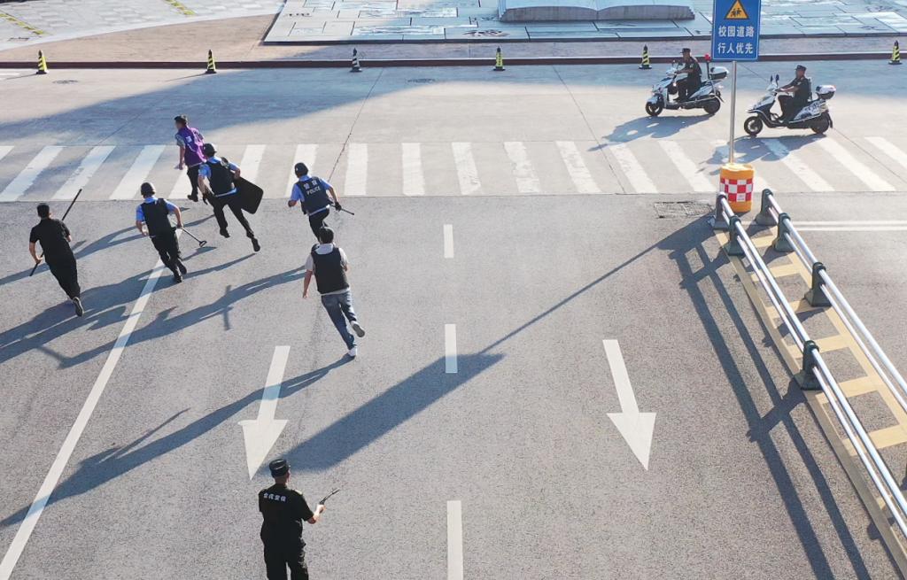 学校党委宣传部、互联网思想政治工作部、党委学生工作部、党委保卫部、国资处、后勤服务处等相关部门负责人以及全体保卫干部、警务中心全体驻校民辅警、安保人员、部分师生等参加本次演练。