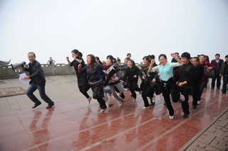四月的春天万象更新,草青树绿,凤凰山的空气格外清新。活动当日,老师们根据自身实际,着运动装从不同的地点朝目的地进发,登山的路上随处可见学院教职工的身影,时而跑跑,时而歇歇;时而吼吼,时而唱唱;一路欢歌笑语,一路影影绰绰。当登山队伍陆续到达凤凰楼时,老师们无不露出满脸的喜悦与欢笑。党委书记李万斌率教职工登上了凤凰楼,并饶有兴致地观赏了凤凰楼的雕刻艺术和达城风貌。