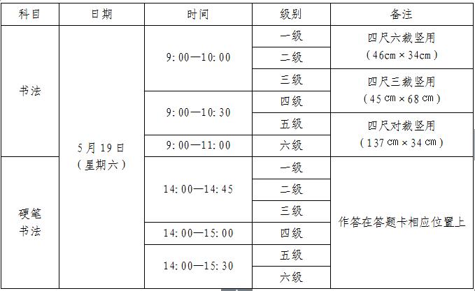 注:参加书法考试的考生需自备宣纸,纸张尺寸见备注。