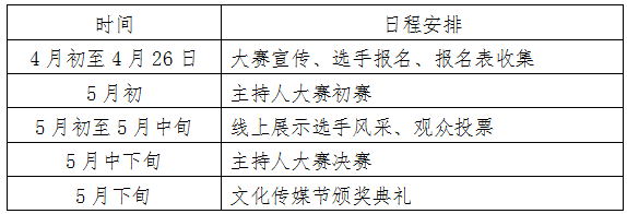 ③选手以抽签的形式抽取一档节目进行主持,限时2分钟。(抽取的题目如天气预报、新闻、旅游等,分值4分)