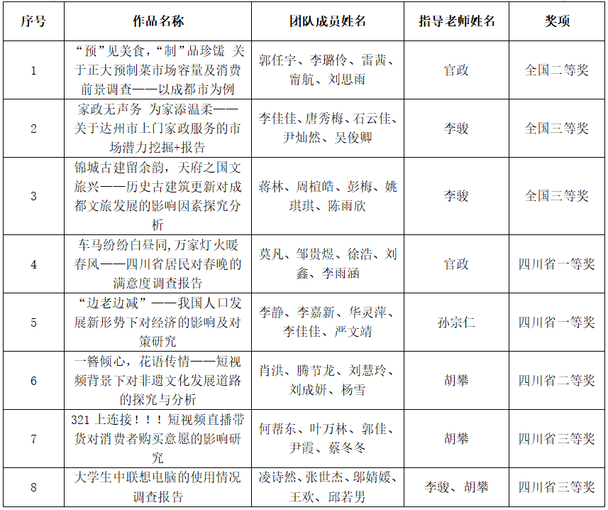 我校已连续5年参加此项赛事,通过比赛,引导学生观察社会、感知社会、增强爱国意识,倡导“真题真做”、解决实际问题,从而提升学生的社会责任感、服务意识、市场敏锐度和团队协作精神,以及组织、策划、调查实施和数据处理与分析等专业实战能力。该项赛事为我校学生搭建了一个良好的实践平台,学生在大赛中磨练了意志,发扬了团队协作精神,培养了分析问题和解决实际问题的能力。