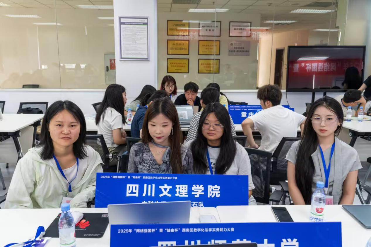 比赛分为线上系统竞赛与现场答辩两个环节。在5月24日的线上竞赛中,参赛队伍通过虚拟仿真系统完成四轮激烈角逐,我校团队凭借扎实的法学功底和高效的协作能力成功晋级。次日现场答辩环节,9支晋级队伍围绕“数字化技术应用于法学”主题,以案例分析、情景剧等形式展开创意展示,并接受来自四川外国语大学、西南大学等高校专家的提问与点评。“法智塔石队”立足新型法律案件,深入剖析数字化技术对法律效率提升的实践路径,其逻辑严谨的论述和富有创新性的解决方案赢得评委高度认可。