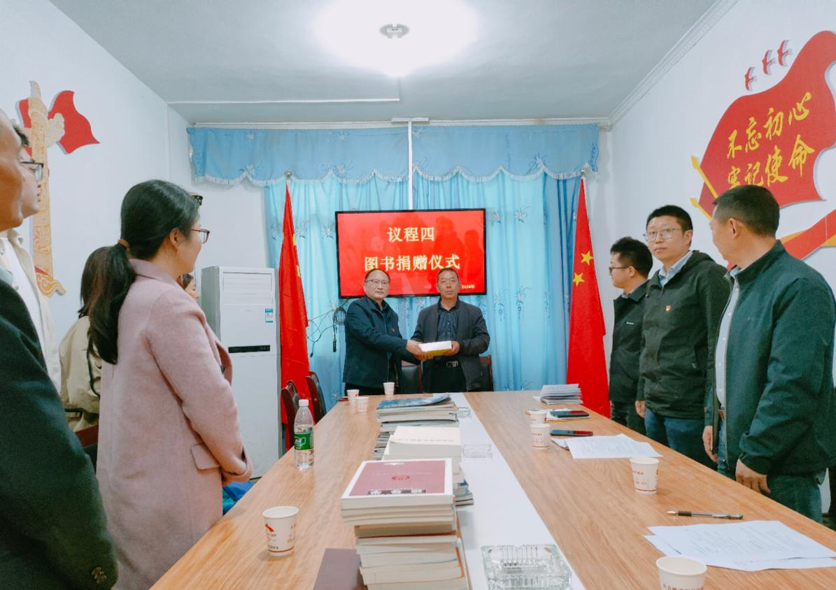 在大桥村党支部阵地,图书馆党总支与村党支部进行了座谈交流,并向村支部捐赠书刊350余册。会上听取了村党支部书记伍永明、副书记朱佳峰对大桥村的基本介绍,赵俊、陈邦杰两位驻村干部分享了一年多来的驻村工作经历及收获。